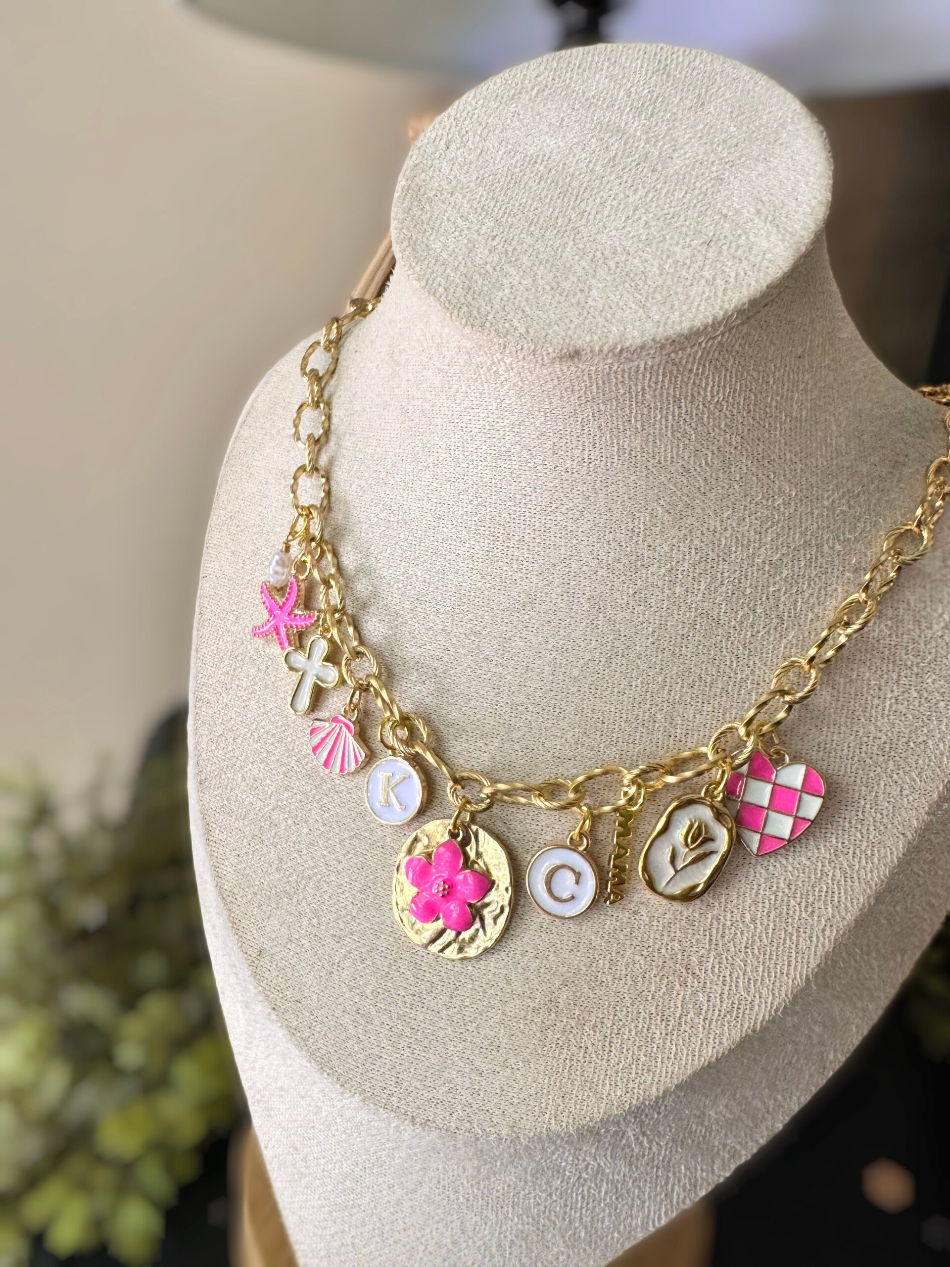 Hot pink beachy necklace